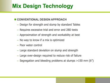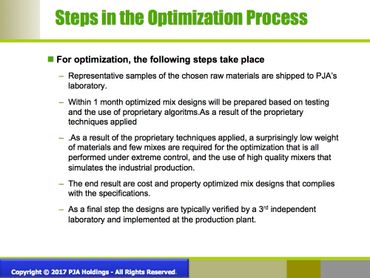 By the PJA technology concrete has been designed all over the world: We worked on Microstructure of Concrete project 101 for Strategic Highway Research Program as the principal, Great Belt Connection, Prince Edwards Island Bridge, Freedom Tower in NY, Revel Casino, Yau Lee Construction in HongKong, Masdar Green City in the Emirates, ready mix plants in Dubai and Abudabi, Qatar, Bahrain, the US and Europe. All together exceeding 100 ready mix plants and thousands of mix designs.
