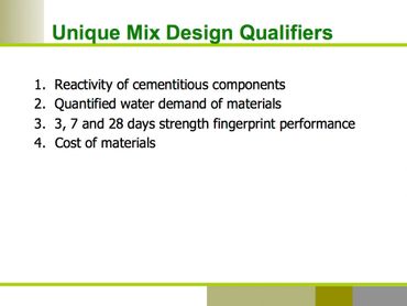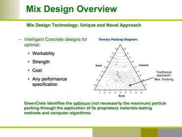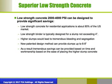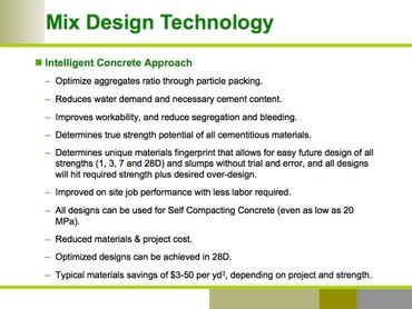 As a customer you get an optimized concrete mix design that complies with the specifications at the lowest cost, and still the best concrete you have ever seen! Savings are typically 1 ->50 US$ per yd3. On Freedom Tower, the savings were $52/yd3 for the highest strength concrete (18,000 PSI = 110 MPa). In addition on major construction projects a team of technicians will typically do mix design trial and error for 3-12 months without ever getting an optimized design. With the PJA technology all of this can be saved as we have the answer confirmed after 1 month.